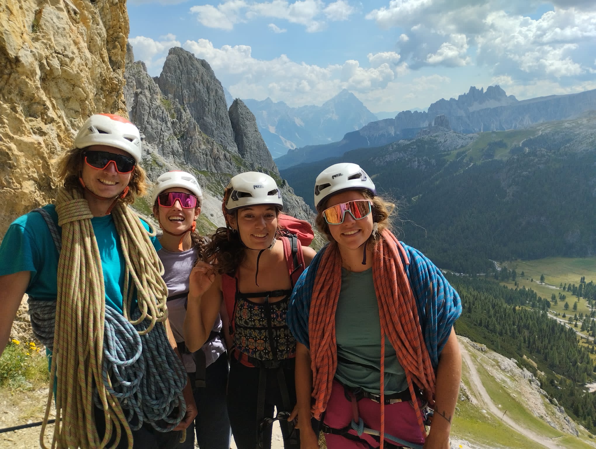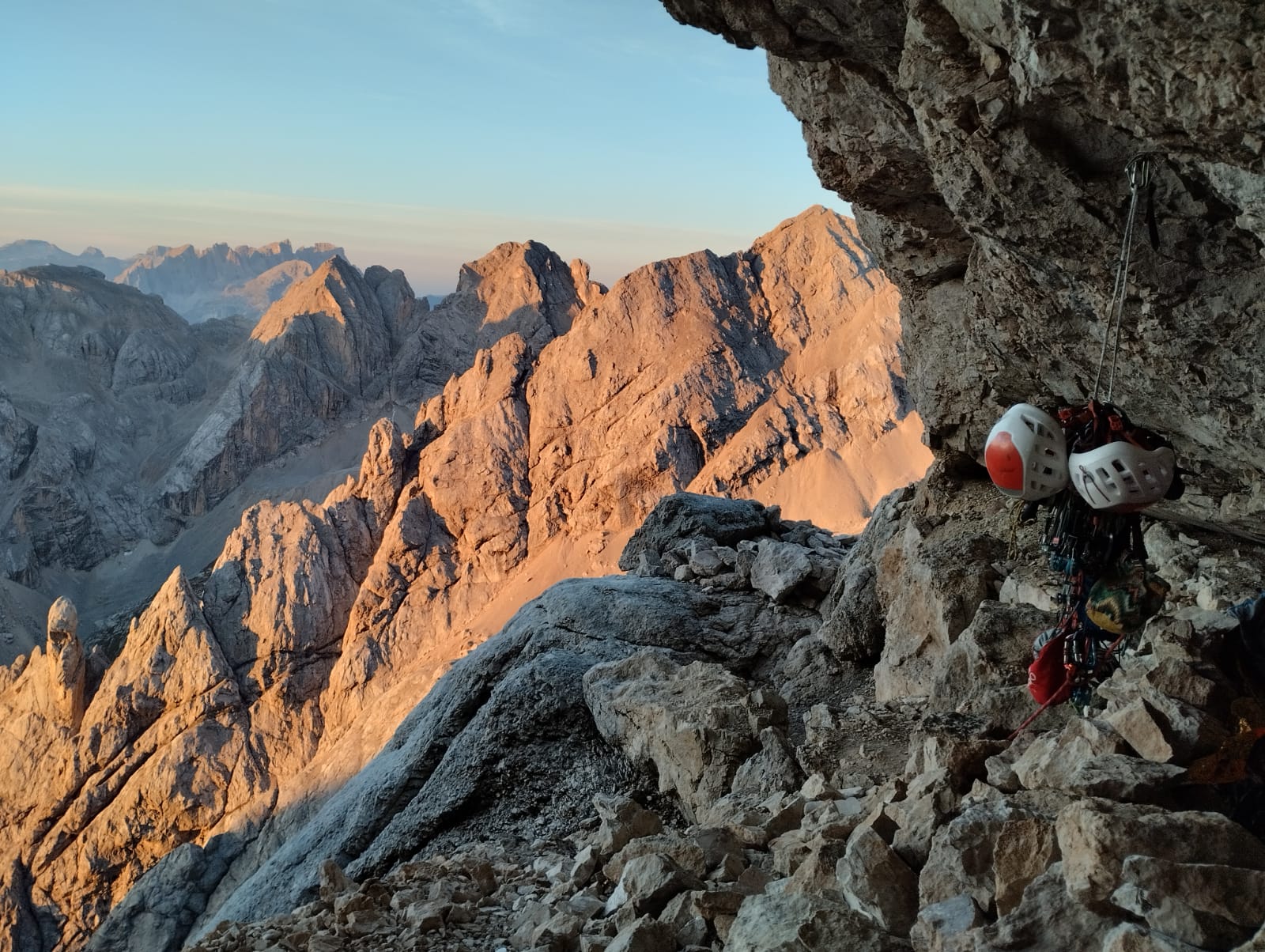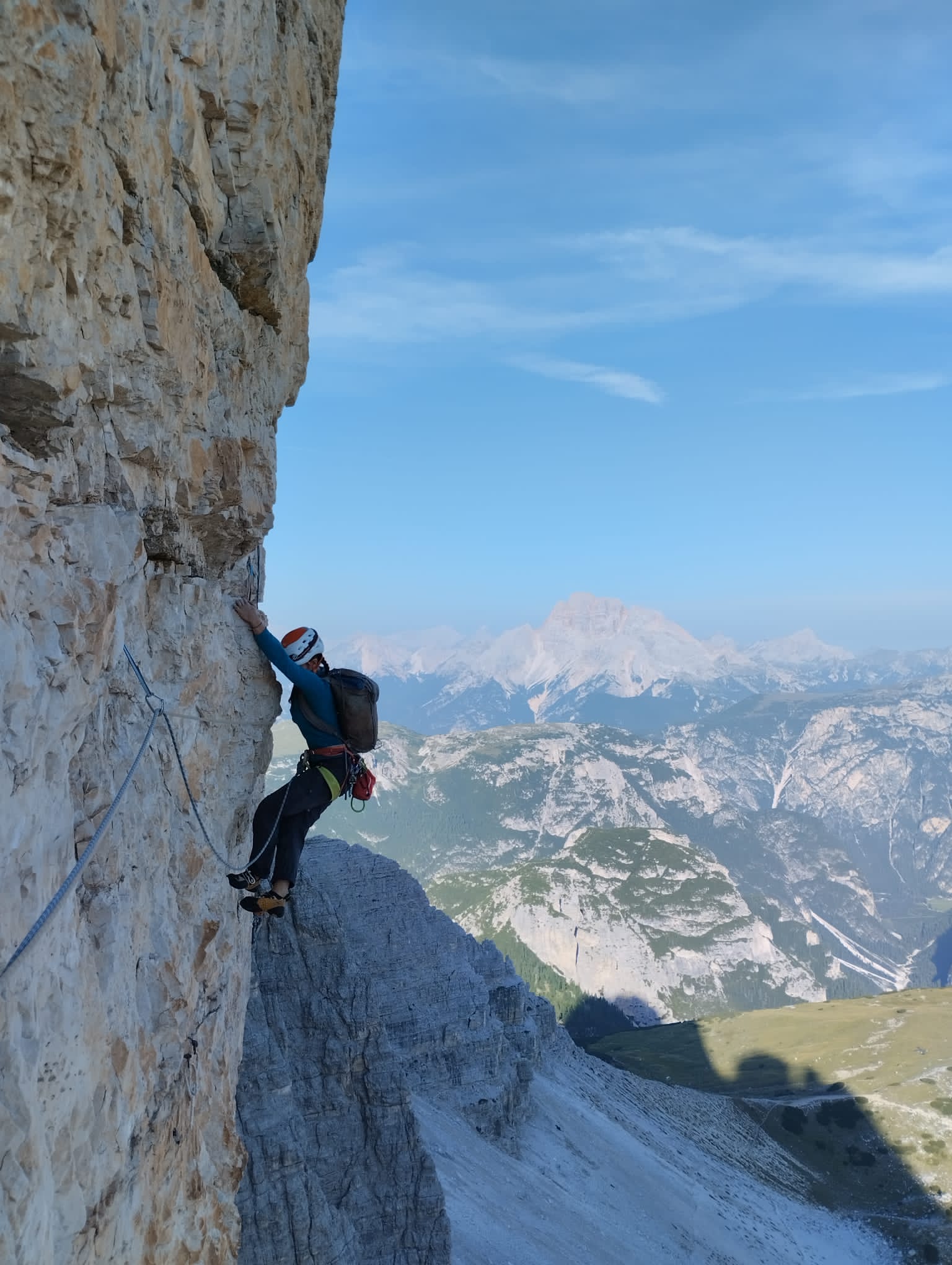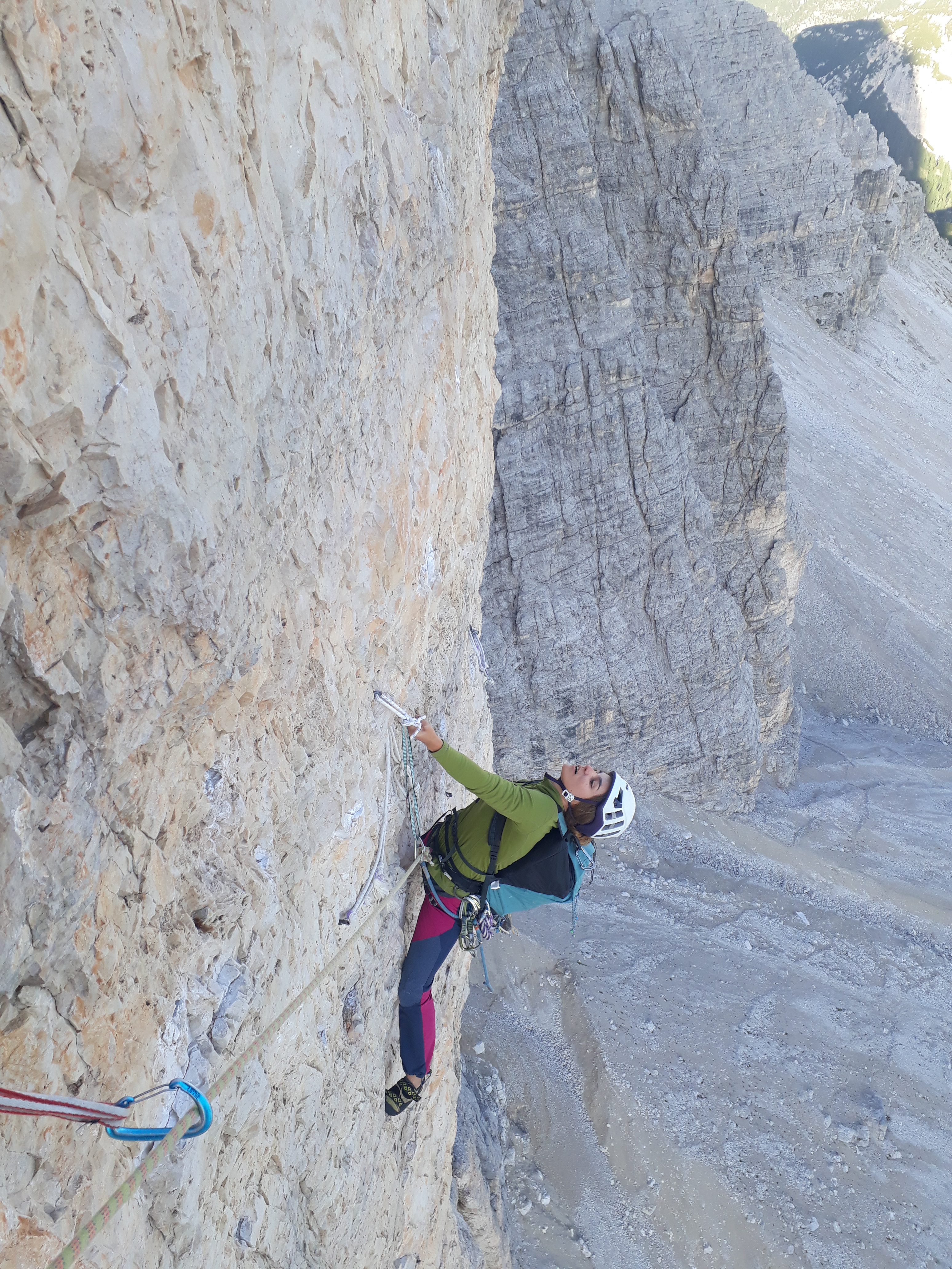Franchement intimidés par les histoires autour de ces lieux (et par la prévision d’orages à 14h), on commence tout doucement avec une belle voie équipée suivie d’une journée de randonnée autour des Tre Cime pour s’impregrer des lieux.