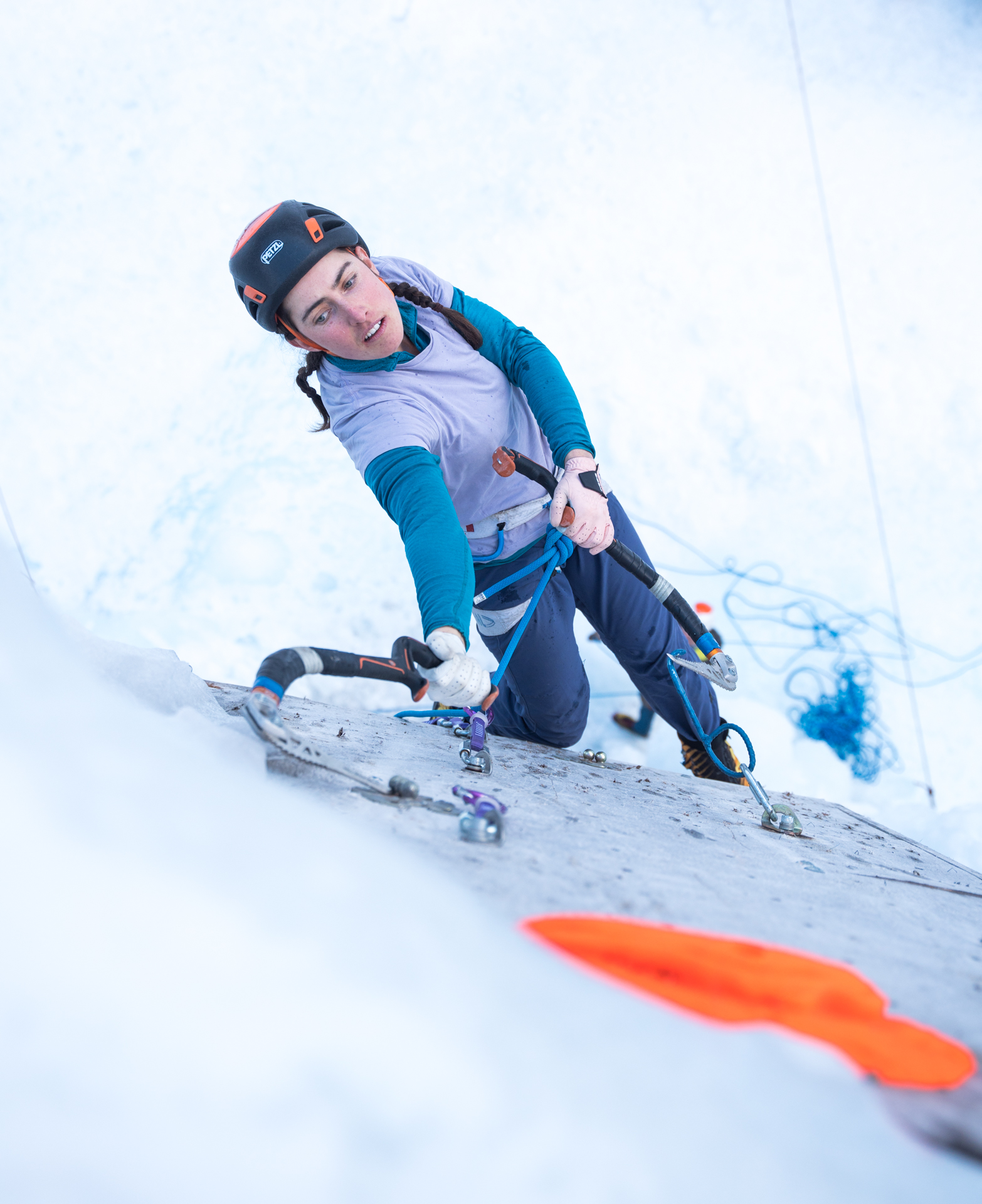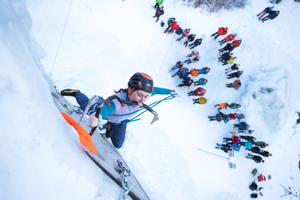 Finales dans l’après-midi à la tour de glace de Freissinières. C’est ma cinquième participation au contest de l’ICE et c’est la première fois que je toppe une voie de finale ! C’était chouette de retrouver les émotions de la compétition. Même pour un bébé évènement ça fait toujours aussi peur de se retrouver toute seule en iso ! Malheureusement c’est pas l’entrainement qui a joué mais plutôt les ouvreurs qui se sont adaptés au niveau des finalistes.