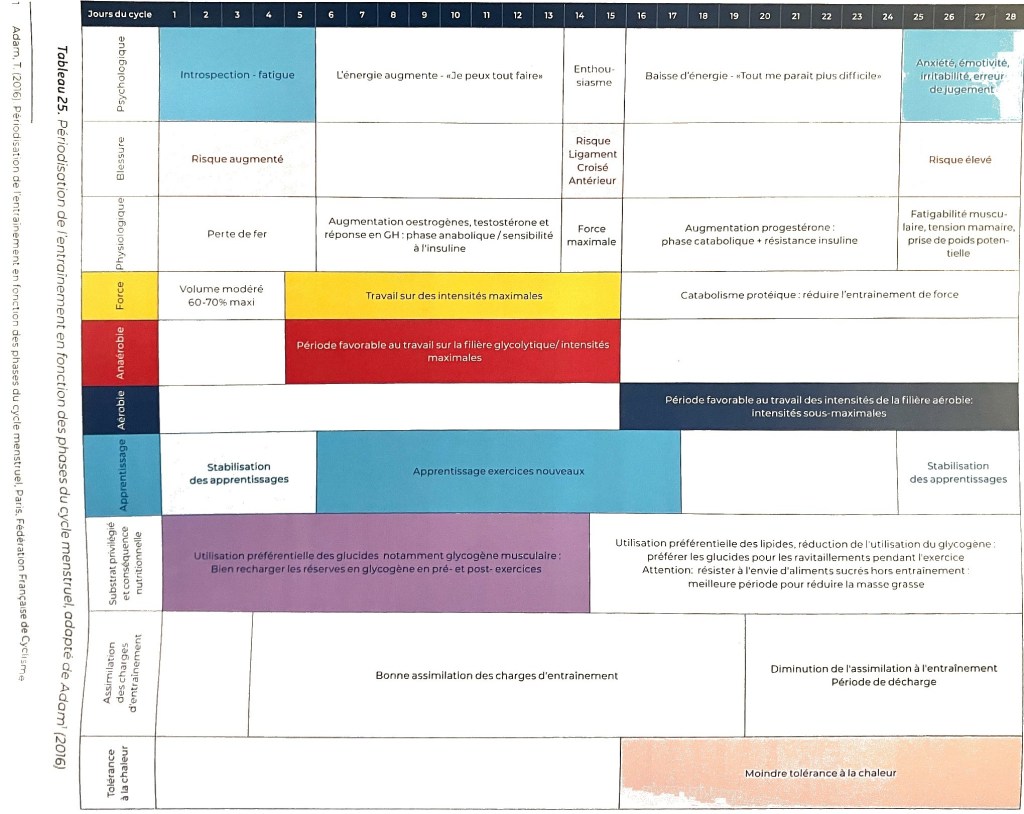 S’il n’existe pas de consensus scientifique sur l’impact physiologique du cycle féminin, il existe un impact psychologique certain (Pottier, 2018) dont il convient aussi de tenir compte pour la plannification et la modulation des entrainements.